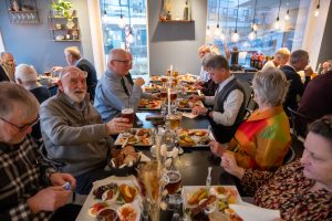 30 SDSK’er med godt humør nød godt af den dejlige mad på Restaurant Couloir. Snakken gik lystigt og traditionen tro var der lotteri med vin og Bailey’s som præmier. |
